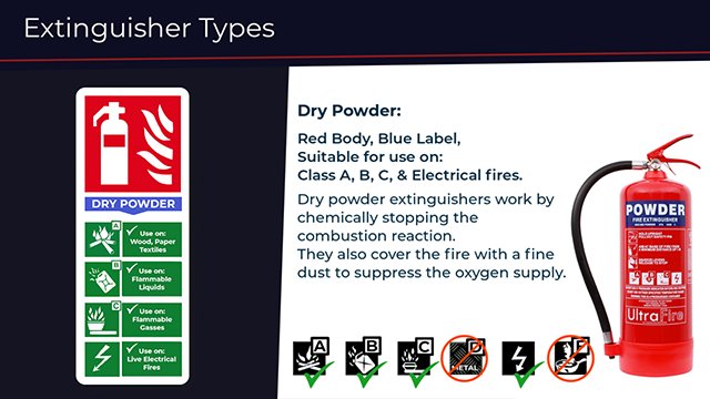 This training includes extinguisher use assessment to comply with legislative requirements for staff who may have to use a fire extinguisher.